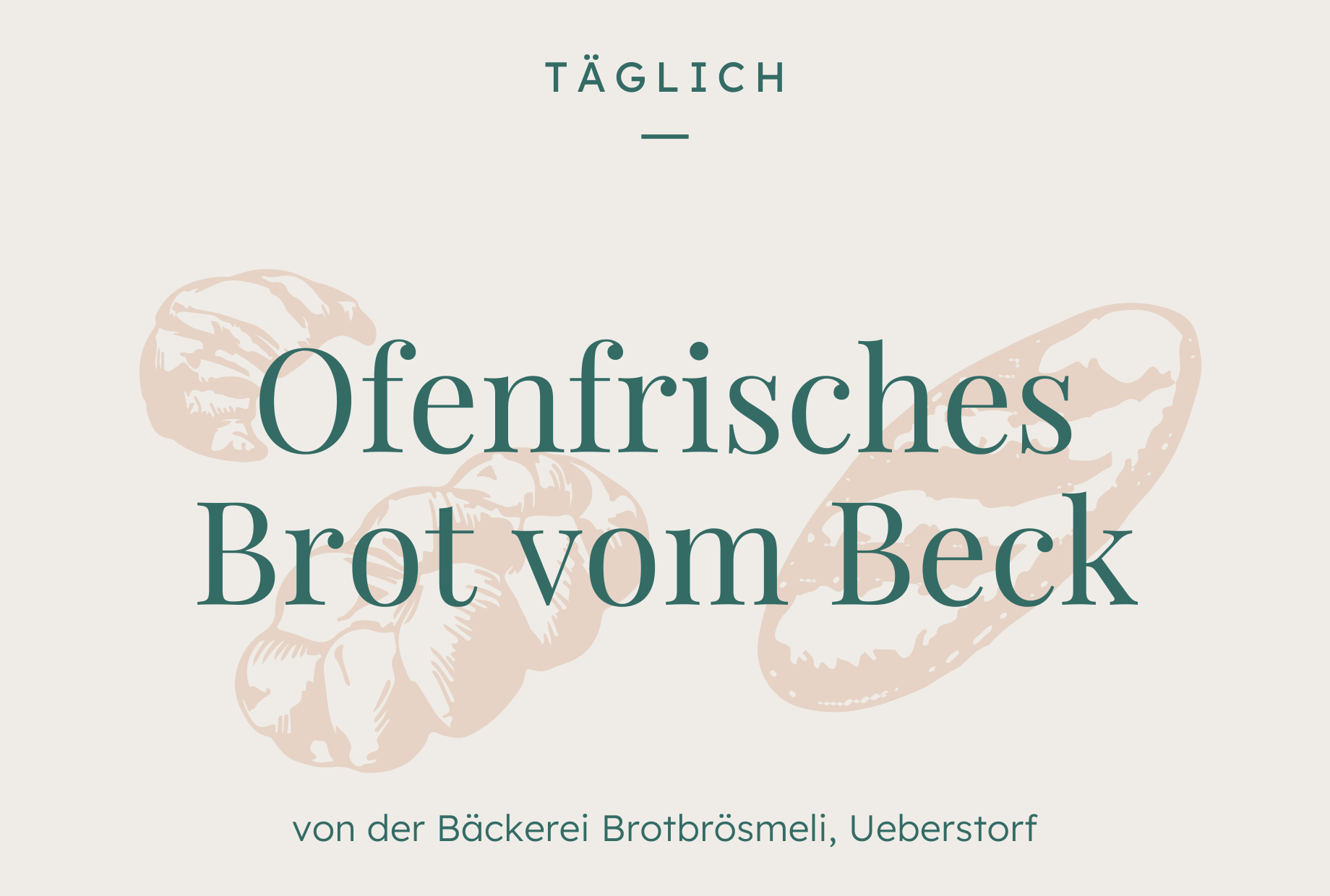 Im Le Clou gibt’s jeden Tag von Montag bis Sonntag ofenfrisches Brot von unserer Partnerbäckerei Brotbrösmeli zu kaufen. Am Sonntagmorgen finden sich an unserer Brottheke ausserdem Zopf und Gipfeli für den gemütlichen Brunch zuhause. Selbstverständlich kommen auch diese direkt aus der Brotbrösmeli-Backstube in Ueberstorf.