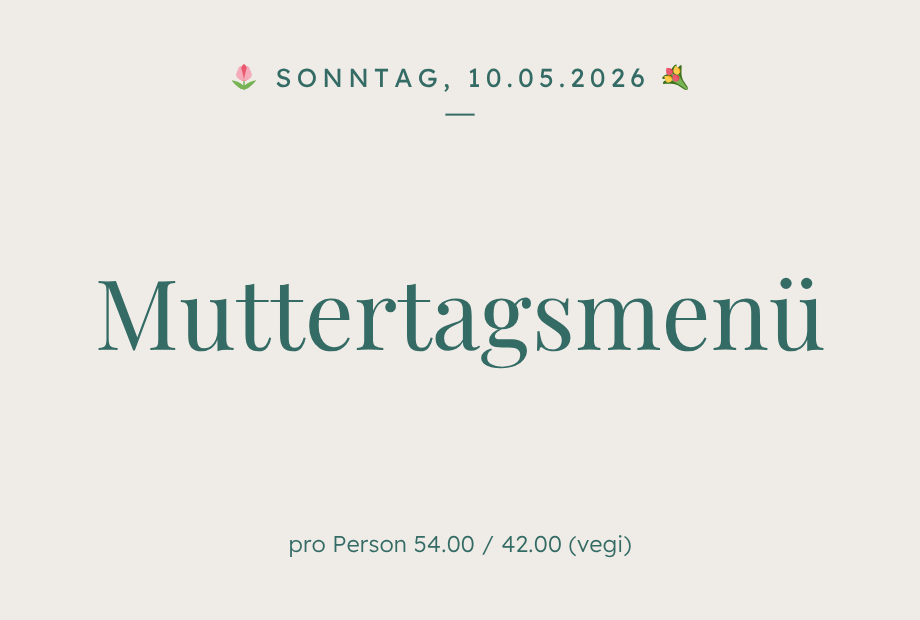 Am Muttertag bieten wir zusätzlich zur Frühlingskarte und dem Mittagsmenü auch unser Muttertagsmenü an.